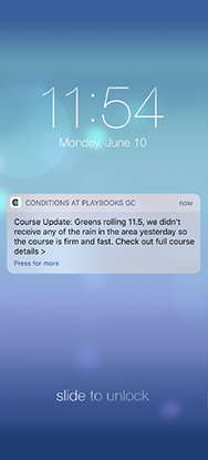 The Superintendent is provided with a custom-built and very easy-to-use CMS (Content Management System) where they can update anything about the course status at any time. We deliver a turn-key setup for updates to be made and archived, it’s as easy as writing a text or tweet. It guarantees the vast majority of golfers are in-the-know about the course as they play due to the app and its notification system.