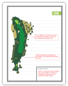 Great for creating work lists, history of work on specific holes, and directing staff, all while away from your office. Setup includes all hole renderings with tree layer and printed Notepads. Print future Notepads on your own, or buy from Playbooks at an affordable rate.