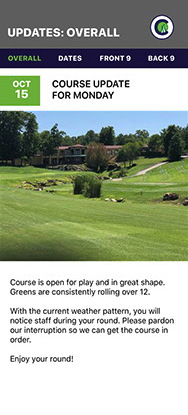 Conditions provides a free app or private website (webapp) to members. The App can alert them via notifications about important course notes for the day from the Superintendent and they can browse other areas of the course as well, like Projects, Articles, FAQ, Pins and much more. It's a complete package for your operation that will actually target the right audience, golfers who want info, in a professional design.