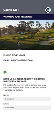 We register the app on the stores for you before you begin use and finalize your notifications settings coding, plus secure your custom URL for the webapp. So you have to do nothing but use the simple CMS interface to edit things at your course. We also provide cards to hand out to golfers so they can easily download the app.